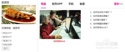 导航还有很多特色板块,如教老人使用电脑的新课堂等。