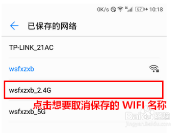 点击WiFi网络列表,点击想要取消的WiFi网络,在手机弹出的界面上点击不保存。