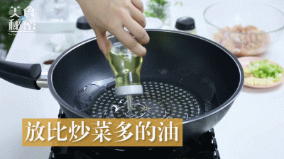 锅中放油,烧热后下入鸡块炸至外表皮变干,呈深黄色后捞出沥油。