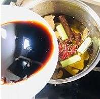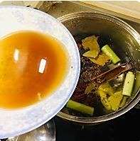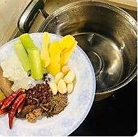 牛腱子下锅放葱姜蒜、料酒;煮熟后撇去血沫,然后用凉水冲洗一下,这样肉更紧致,后面成型切薄片更好切,这一步我忘记拍照了…所以不要介意哈 然后准备一个锅锅,放水然后可以像我这样豪放的全扔锅里也可以用个纱布包起来再扔。其实都一样的,看你怎么开心啦!