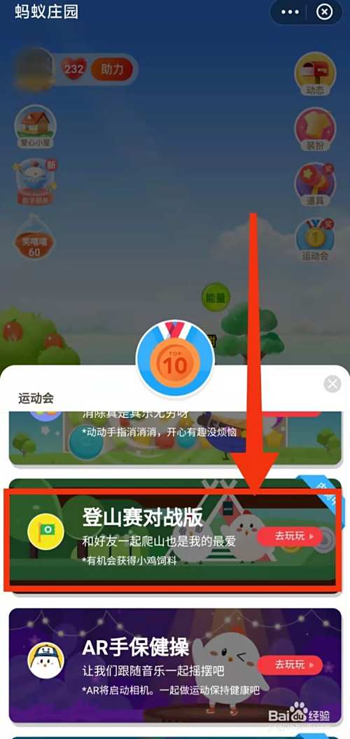 我们可以完成支付宝蚂蚁庄园的“登山赛对战版游戏”。