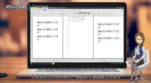 1首先,打开文档,找到有空白页的地方,用鼠标左键选取空白部分。