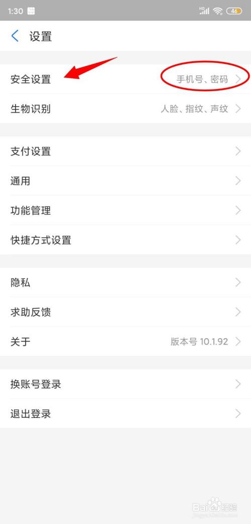 点击后,继续点击右上角的【设置】后选择第一项【安全设置】;