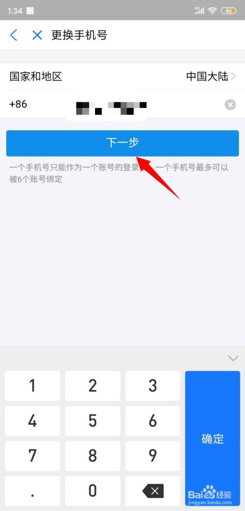 点击后,输入新的手机号并点击【下一步】;