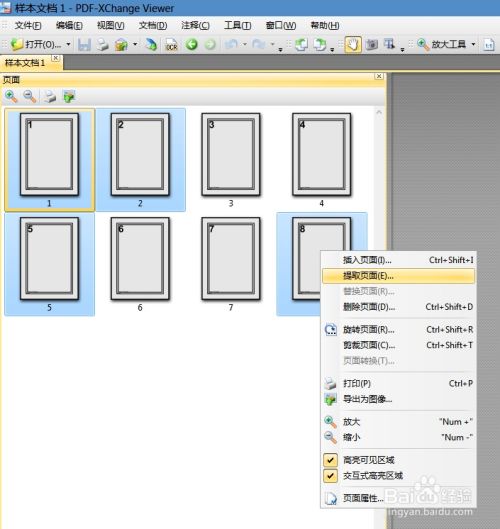 用PDF-XChange Viewer打开文档,文档是我创建的样品文档,共有八个页面。