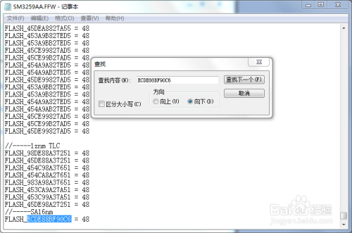 1…低格 选择48(这个数值从“SM3259AA.FFW”这个文件里面查看,用记事本打开,找到自己对应的闪存识别码,我的是ECDE88BF90C6,如下图