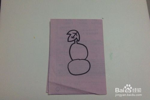 如图所示,给胡芦画一片叶子做一下装饰,这样比较好看。
