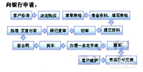 到经销商,经销商会向您提供汽车消费贷款购车须知、购车常识、汽车消费贷款实际操作问答、车辆价格明细表、消费贷款购车费用明细表、汽车分期付款销售计算表、客户个人资料明细表和客户登记表等。当您决定通过汽车金融公司申请车贷时,需要填写消费贷款购车初、复审意见表,消费贷款购车申请表等。经销商对您的消费贷款购车进行初步的资格审查并签署意见。并由银行进行初审和复审,如果都通过了,经销商会与您签订购车合同书,通知您交付首期购车款,并为您办理银行户头和银行信用卡,你需要填写车辆验收交接单。