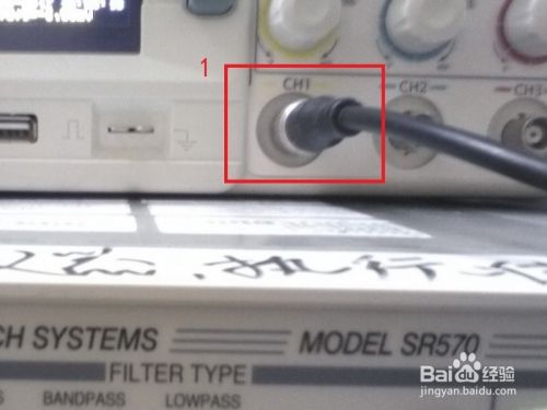将BNC输出线的另一端连接示波器的某一通道(红框1);