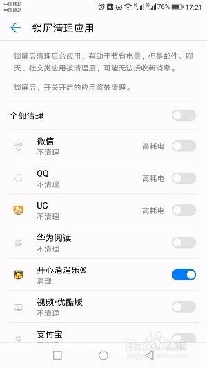 随着智能机逐渐普及,手机耗电快已经成为一个问题。而锁屏清理后台应用,有助于省电。一般应用使用了锁屏清理,那么锁屏后,该项应用就会被清理掉。
