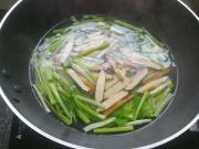 锅中烧开水,先焯一下芹菜30秒,然后再下入香干再30秒