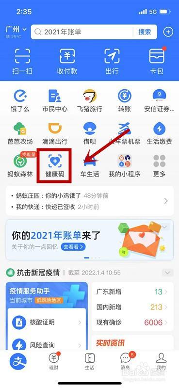 可以进入手机软件查看。点击微信进入个人主页,找到防疫健康码或者点开支付宝找到健康码。