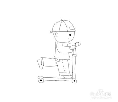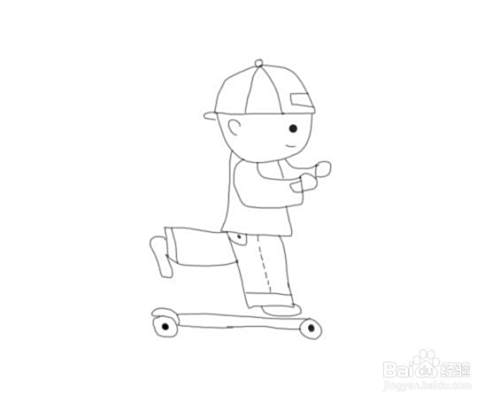 最后我们再画出小朋友的滑板车上面的把手,这样小朋友玩滑板车就画好了,如图所示: