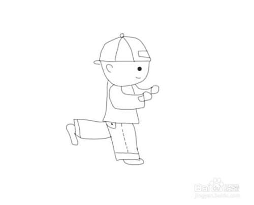 再在身体的下面我们再画出小朋友的两条腿,并在腿部上面再画出小朋友的脚部,如图所示: