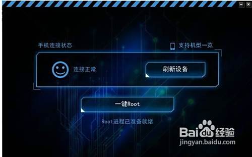 接下来使用一键root软件,像kingroot等,出现操作界面,手机与电脑连接正常后会显示“连接正常”;如显示设备未连接,请点击“刷新设备”就行。