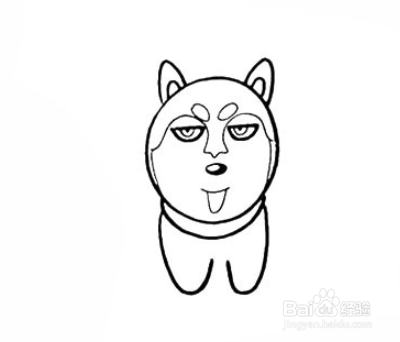 在眼睛上方画一个短眉毛,扁平的鼻子和突出的部分,在底部画一个哈士奇张开嘴的大嘴