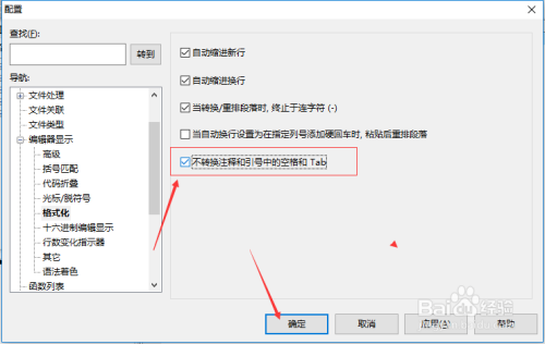 勾选上 不转换注释和引号中空格和TAB 选项之后,点击 确定