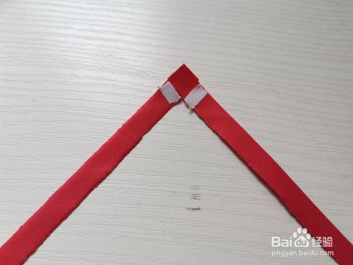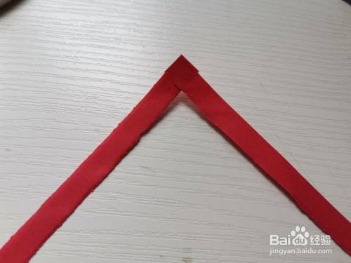 先把红色纸条的两头用双面胶贴好,再交叉处的下面贴上双面胶。