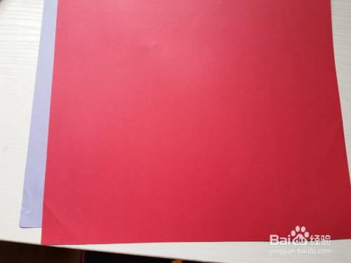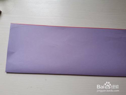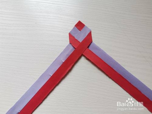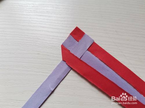 在红色纸条下面交叉处按下图贴上两条紫色纸条。