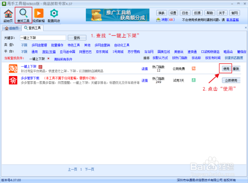 在一键上下架商品时,先在甩手工具中找一键上下架。点击使用。