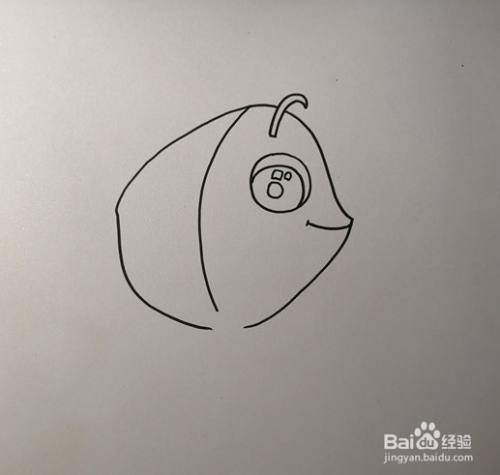 然后再画出小金鱼的头部,小金鱼的眉毛要在头部外面,小金鱼的头部是扁圆形状的。