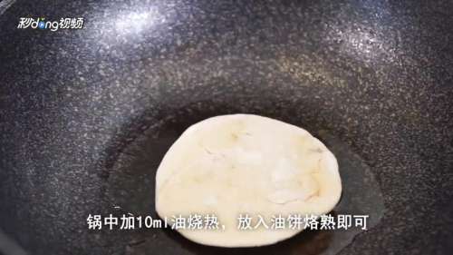 4烙油饼:锅中加10ml油烧热,放入油饼烙熟即可。