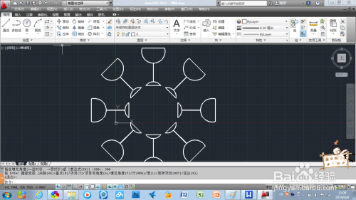 2.根据命令行的提示,在绘图区选中酒杯,按Enter键确认。指定环形阵列的圆心基点,输入阵列的数目8,按Enter键确认。输入填充角度360度,按Enter键确认。最后输入x,按Enter键确认,退出命令。最终效果如图所示。