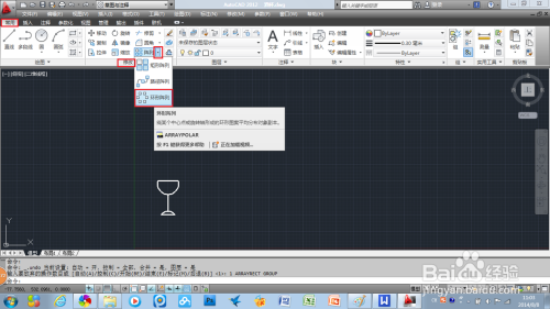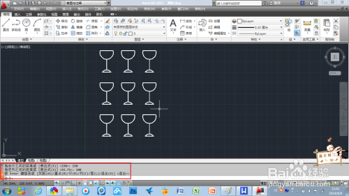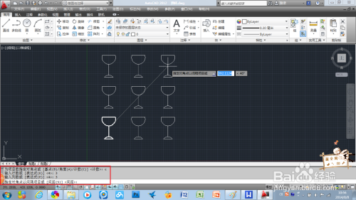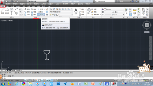 2.根据命令行的提示,在绘图区选中酒杯,按Enter键确认。然后输入c,按Enter键确认。输入行数3,按Enter键确认,输入列数3,按Enter键确认。如图所示。