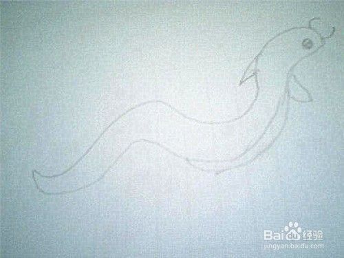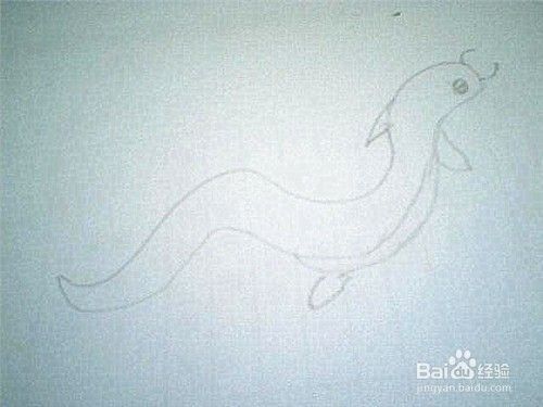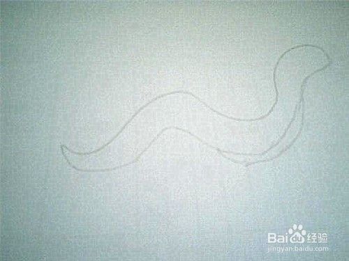 泥鳅鱼滑溜溜的,喜欢钻在水底的泥土里生活,简笔画泥鳅鱼是这样画的:
