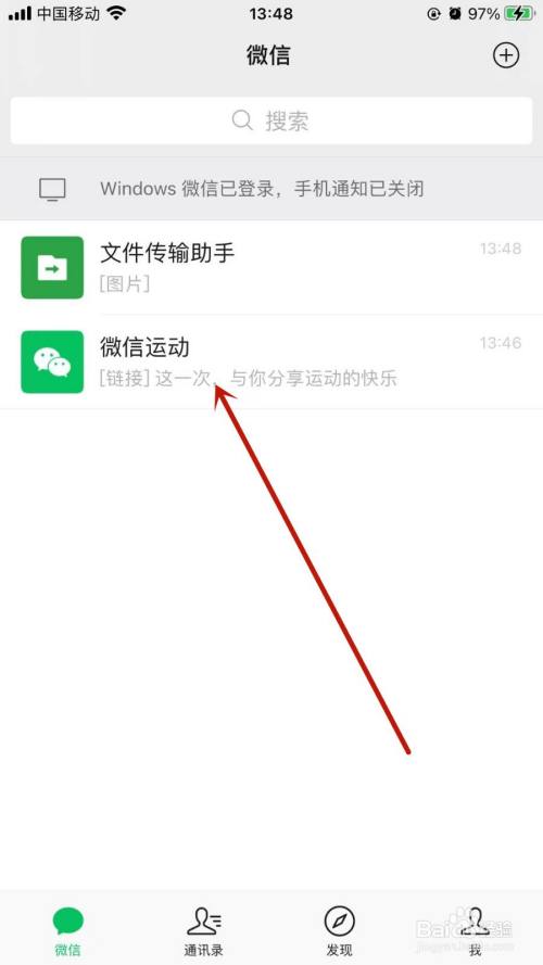 进入微信首页点击微信运动