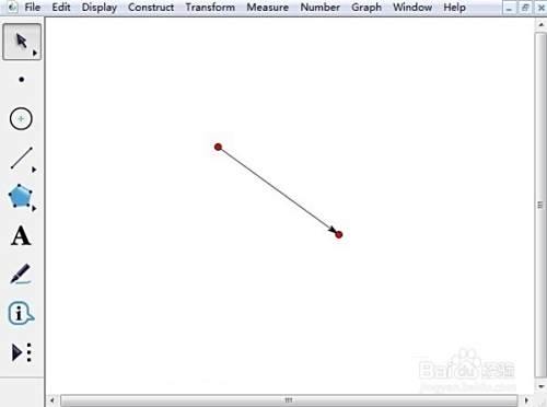 步骤二 选中箭头工具以后,在空白画板上点击鼠标,作出箭头的一个端点,然后拖动鼠标,到适当位置再点击鼠标,作出箭头的另一端,得到如下图所示箭头,此箭头可以自由调整位置和大小。