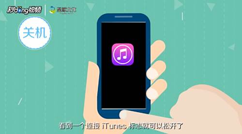 3接着再一直按着home键,直到屏幕黑屏后,松开电源键,home键还得继续按着,直到苹果手机的屏幕上看到一个连接iTunes标志就可以松开了。