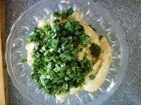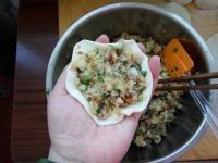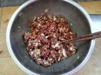 然后把葱姜末,酱油,盐,香油加入牛肉馅中拌匀,放入白菜韭菜盆中在次拌匀备用