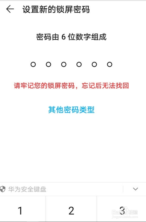 2、点击【设置锁屏密码】,输入六位数手机锁屏密码,并确认即可。