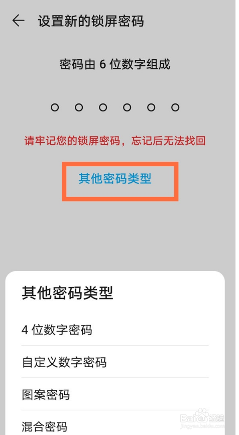 3、也可以点击下方的【其他密码类型】,选择想要设置的密码类型进行设置。