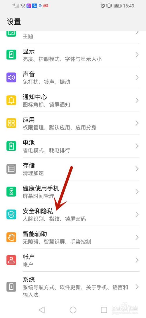 进入设置界面后,点击【安全和隐私】按钮,如图所示。