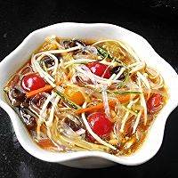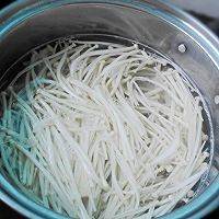 金针菇去老根部,洗净散开;入开水焯水后捞出过冷