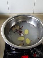 2提前量好坛子盛装的水量,水内添加八角、花椒、香叶、姜,煮开后小火慢煮5分钟,然后添加盐,不停搅拌,直至盐水饱和;