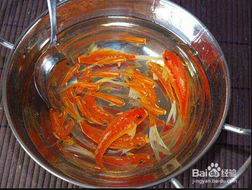 6一周之后的小金鱼就学会觅食了,此时我们可以把一些活食切的很碎,然后喂给金鱼食用。喂养时同样要注意食量。