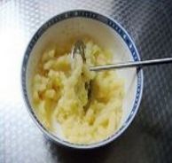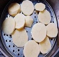 手上抹一些油,取鸡蛋大小的土豆面团揉圆,再按扁