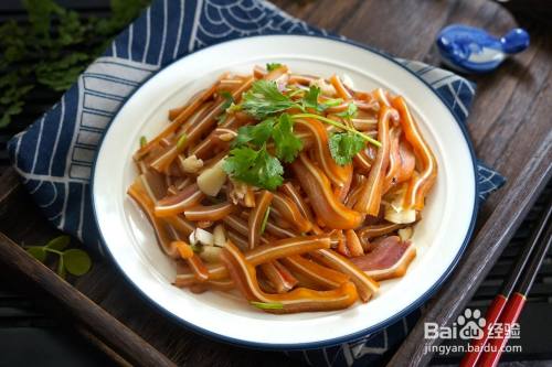 捞出放凉,夏天要放进冰箱冷藏一会儿,再取出切片条会更好切。