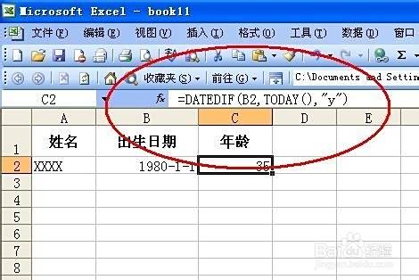 Excel中的DATEDIF() 函数可以计算两单元格之间的年、月或日数。因此,这个函数使得计算一个人的年龄变得容易了。在一个空白工作表中的B2单元里输入生日,用斜线分隔年、月和日,在C2单元中输入=DATEDIF(B1,TODAY(),"y") ,然后按Enter,这个人的年龄(以年表示)将被显示在C2单元中。