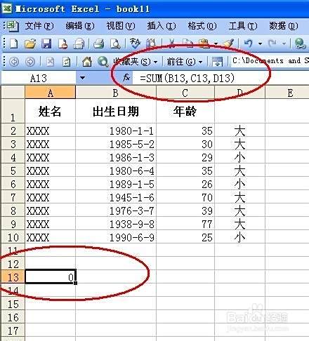 假如要将单元格B13、C13和D13中的数据之和填入A13中,操作如下: 先选定单元格A13,输入“=”,双击常用工具栏中的求和符号“∑”;接着单击单元格B13,键入“,”,单击C13,键入“,”,单击D13,这时在编辑栏和A13中可以看到公式“=sum(B13,C13,D13)”,确认后公式即建立完毕。