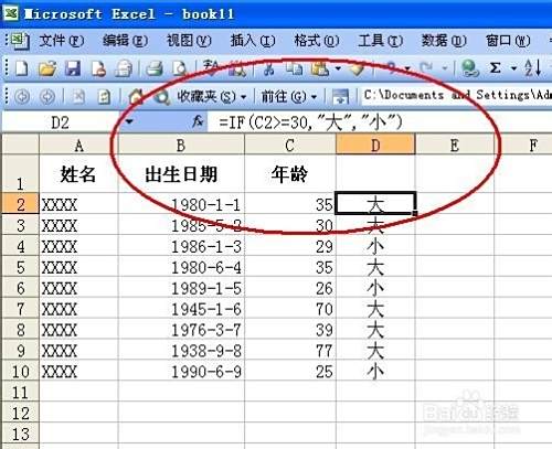 它的表达式为:IF(logical_test,value_if_true,value_if_false),logical_test表示计算结果为TRUE或FALSE的任意值或表达式。例如C2>=30就是一个逻辑表达式,如果C2单元格中的值大于等于30时,表达式结果即为TRUE,D2就为“大”,否则结果为FALSE,D2就为“小”。