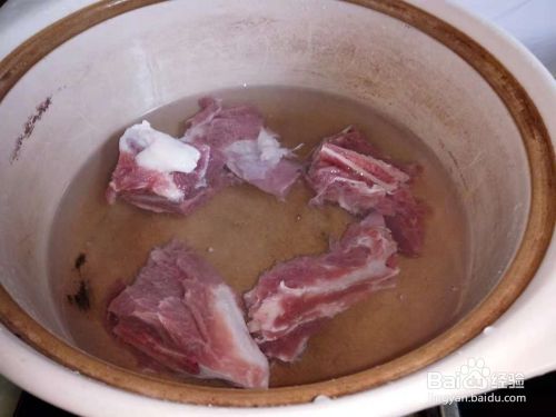 陶瓷锅内放水,烧开,将扇骨放进去,烧开再捞出,这样去掉一些浮沫和血水。