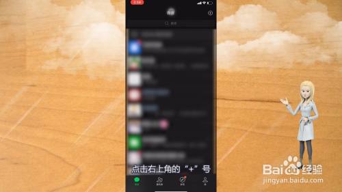 在微信界面中,点击右上角的“+”号。