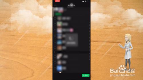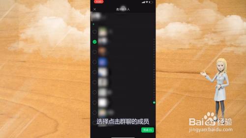 进入选择联系人界面后,选择点击群聊的成员。