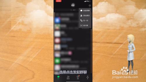 在打开的菜单中,选择点击发起群聊。