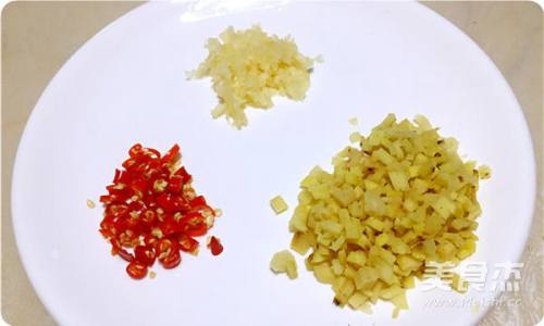 3高良姜、小米辣切成末,大蒜压成蓉。