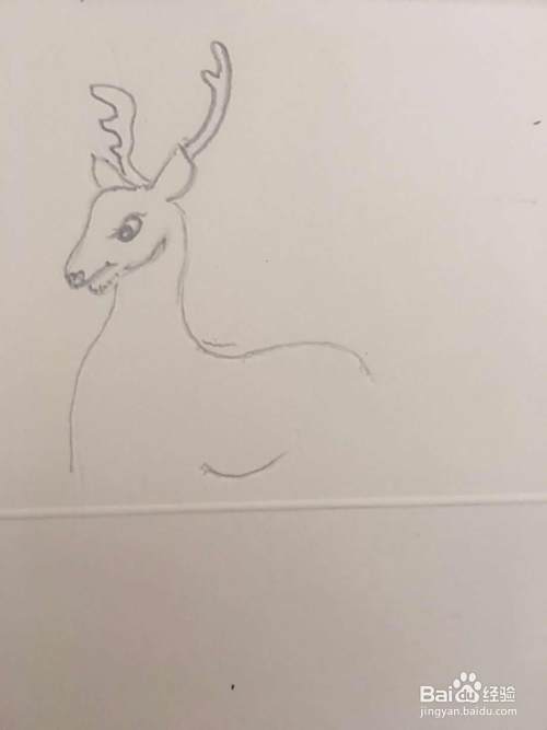 第二步 画上梅花鹿的头部 包括 耳朵 眼睛 嘴巴 鼻子和雄梅花鹿的角